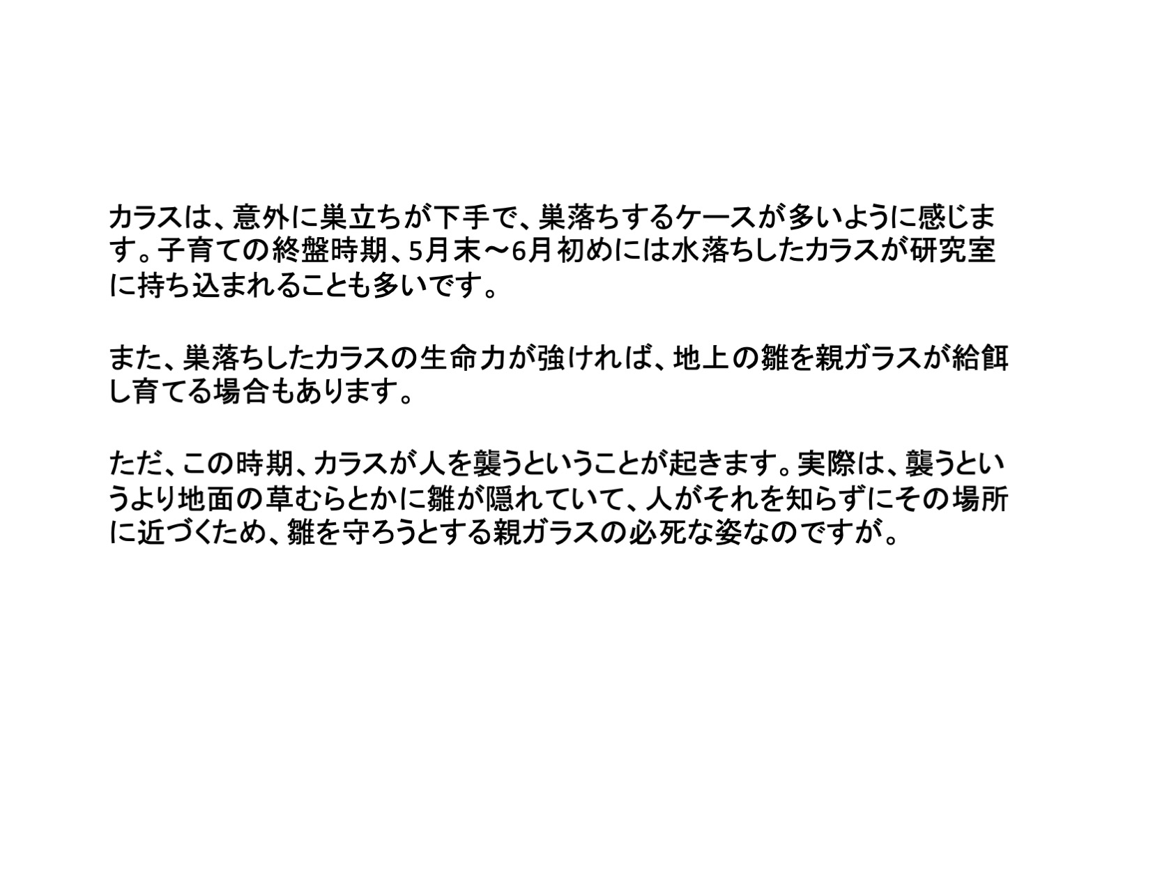 カラスの子育て