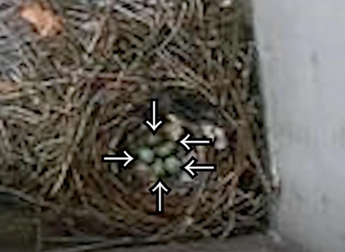 上記の動画をみると、カラスがどうやって巣を造っているのかがよくわかると思います。木の枝が徐々に集まり始め、時にはハンガー等の人工物も使って、巣を造っていきます。卵を産み落とす真ん中には、くぼみを作り綿のような柔らかい素材が使われています。