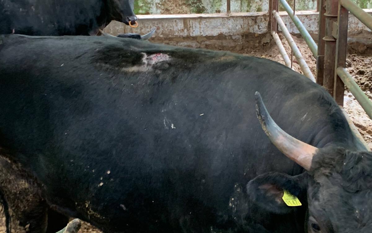 畜産現場での被害も深刻だ。家畜の飼料を食べる他、牛の乳房の血管を突いて失血死させるといった例もある(写真は背中をカラスにつつかれた牛)。最も甚大な被害をもたらすのは、家畜の全頭処分につながる特定家畜伝染病の伝播だ。高病原性鳥インフルエンザのようにカラス自身が感染する伝染病以外にも、口蹄疫や豚熱のように足裏にウイルスを付着させて、運ぶ例もある。