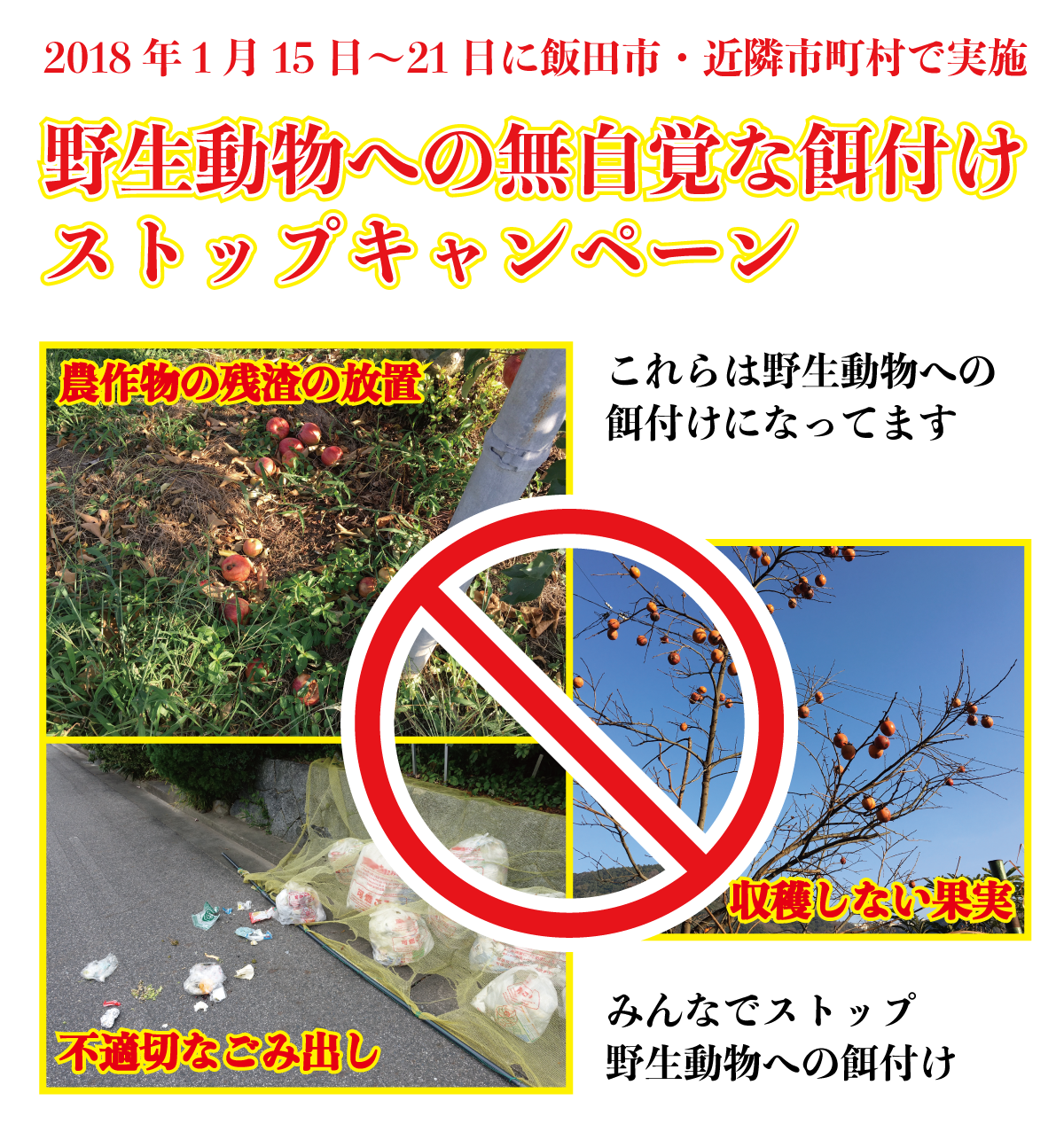 - Project 飯田市にて、「野生動物への無自覚な餌付けストップキャンペーン」を行います。
