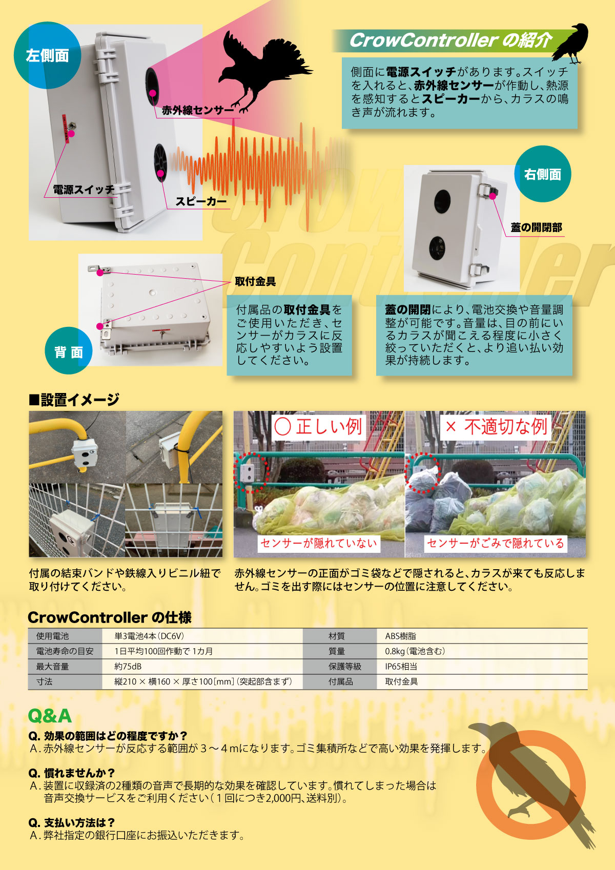 CrowController は、ゴミ集積所以外の場所での使用には適しておりません。